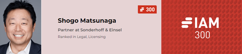 “Shogo Matsunaga is at the top of everyone’s list when it comes to SEP law. He helps clients navigate the complicated and ever-changing landscape and he demonstrates unparalleled practical experience and international perspective. He is one of the top legal experts in Japan.”